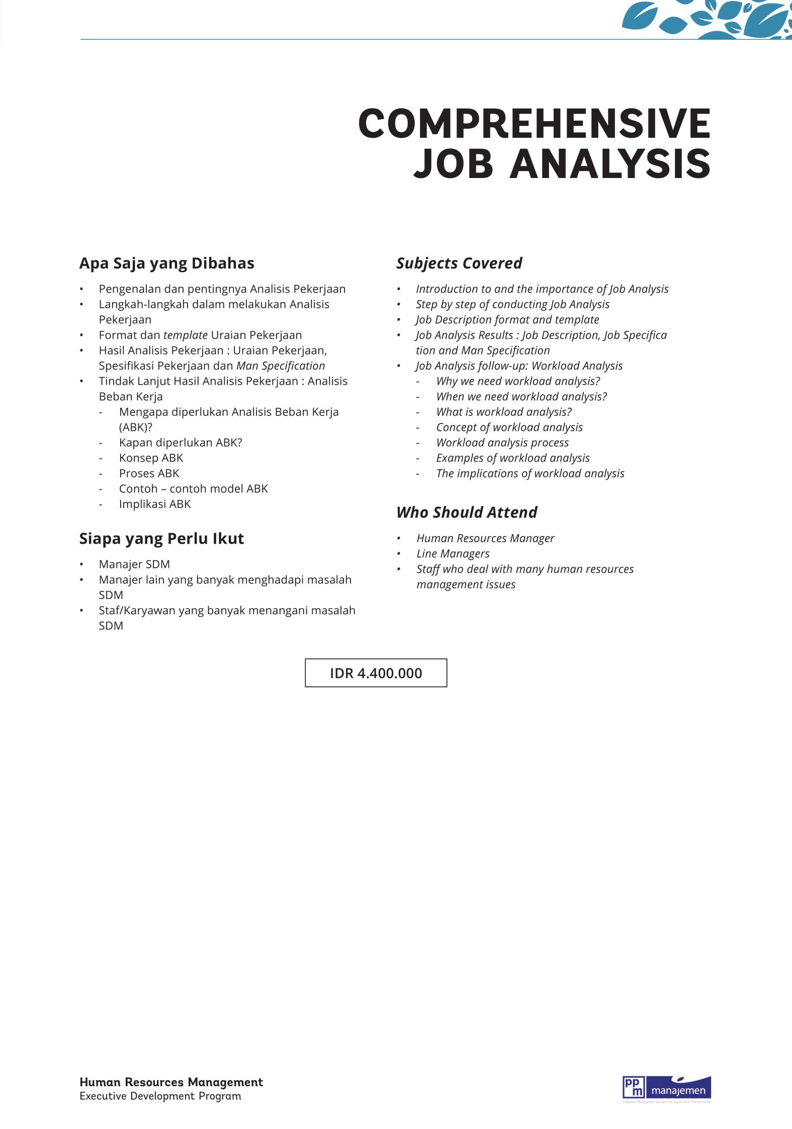 21 contoh kasus pt makmur sentosa dibutuhkan supervisor Ketampanan wajah, bukan faktor yang perlu dinilai/dibayar. Pengertian analisis jabatan (job analysis) dan tujuan analisis jabatan, analisis jabatan adalah proses untuk mengidentifikasikan dan menentukan secara . Contoh job description & job specification. Menggunakan contoh perilaku sebagai dasar, mengidentifikasi dan memilih hanya kompetensi yang paling penting yang diperlukan untuk menunjukkan kinerja yang .